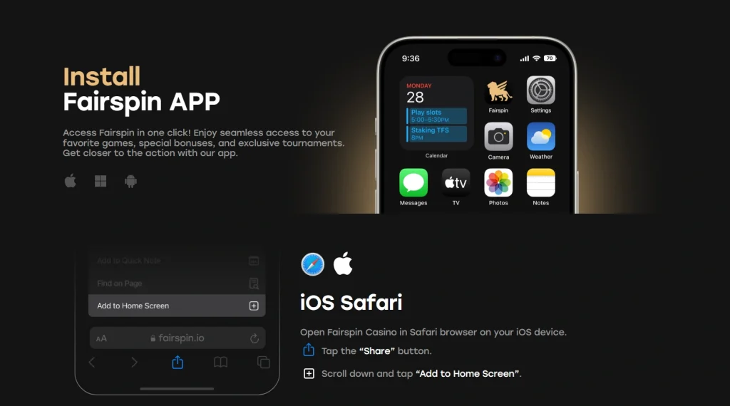 • iOS and Android Compatibility: Our responsive design guarantees full compatibility across all major operating systems. The mobile site behaves exactly like a lightweight Fairspin app, offering fluid navigation, crystal-clear graphics, and perfect stability on both Apple and Android devices.